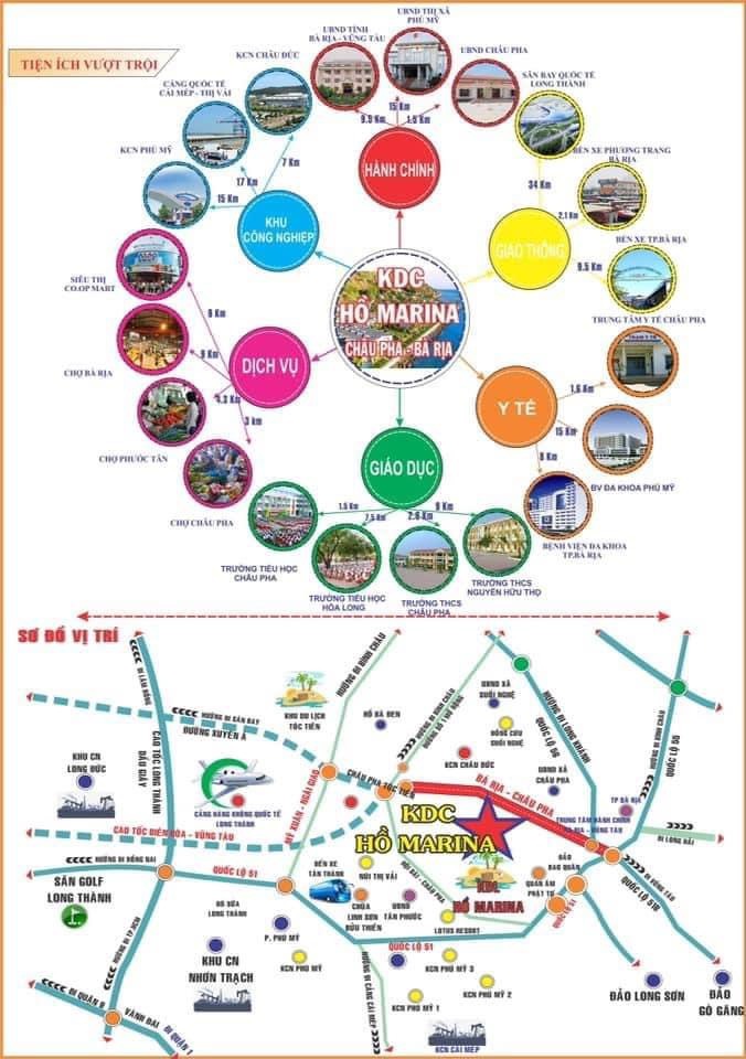Dự án KDC Marina Châu Pha Bà Rịa hiện diện tại trung tâm khu đô thị hiện đại cảng Cái Mép. Khu đô thị nổi bật với sự hiện đại của hệ thống tiện ích công cộng và các dịch vụ xung quanh. Hàng loạt những hạng mục tiện ích đẳng cấp như: TTTM, hệ thông ngân hàng, trường học các cấp, chợ Phước Hoà, chợ Ông Trịnh, chợ Tân Thành, trung tâm hành chính huyện Tân Thành. Bên cạnh đó, với lợi thế kết nối giao thông, cư dân có thể di chuyển về các khu phát triển quan quốc Lộ 51, các tuyến cao tốc và sân bay Long Thành.